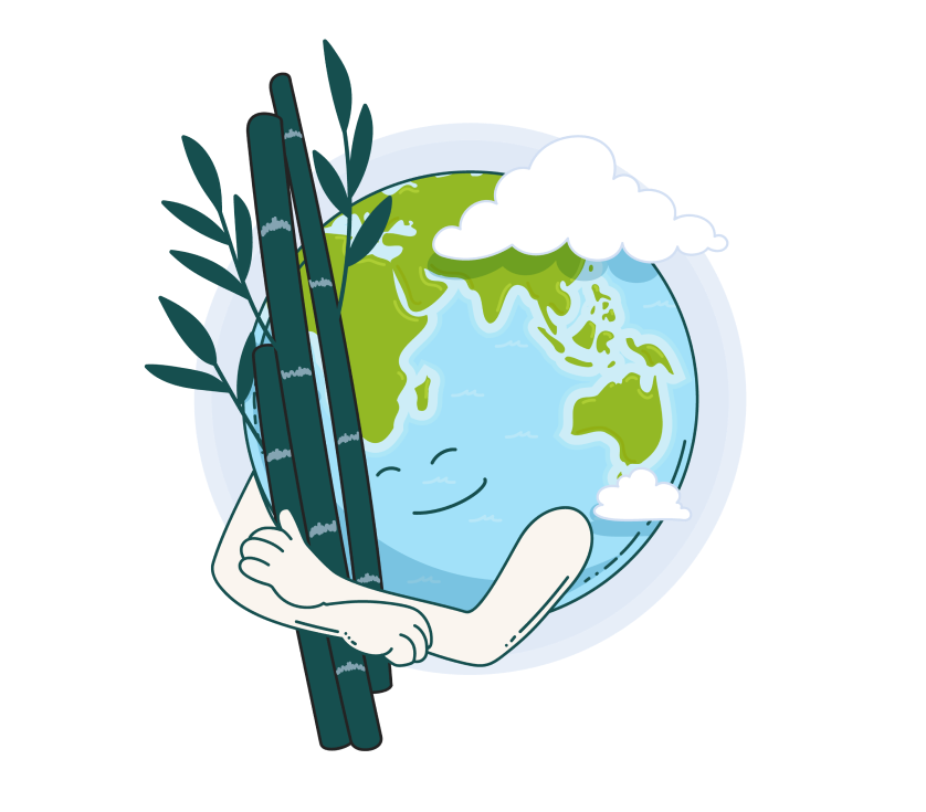 Tijdens het groeien absorbeert bamboe tot wel 30% meer CO2 en geeft het 35% meer zuurstof af dan een boom. Het helpt dus mee aan een betere lucht en klimaat.
