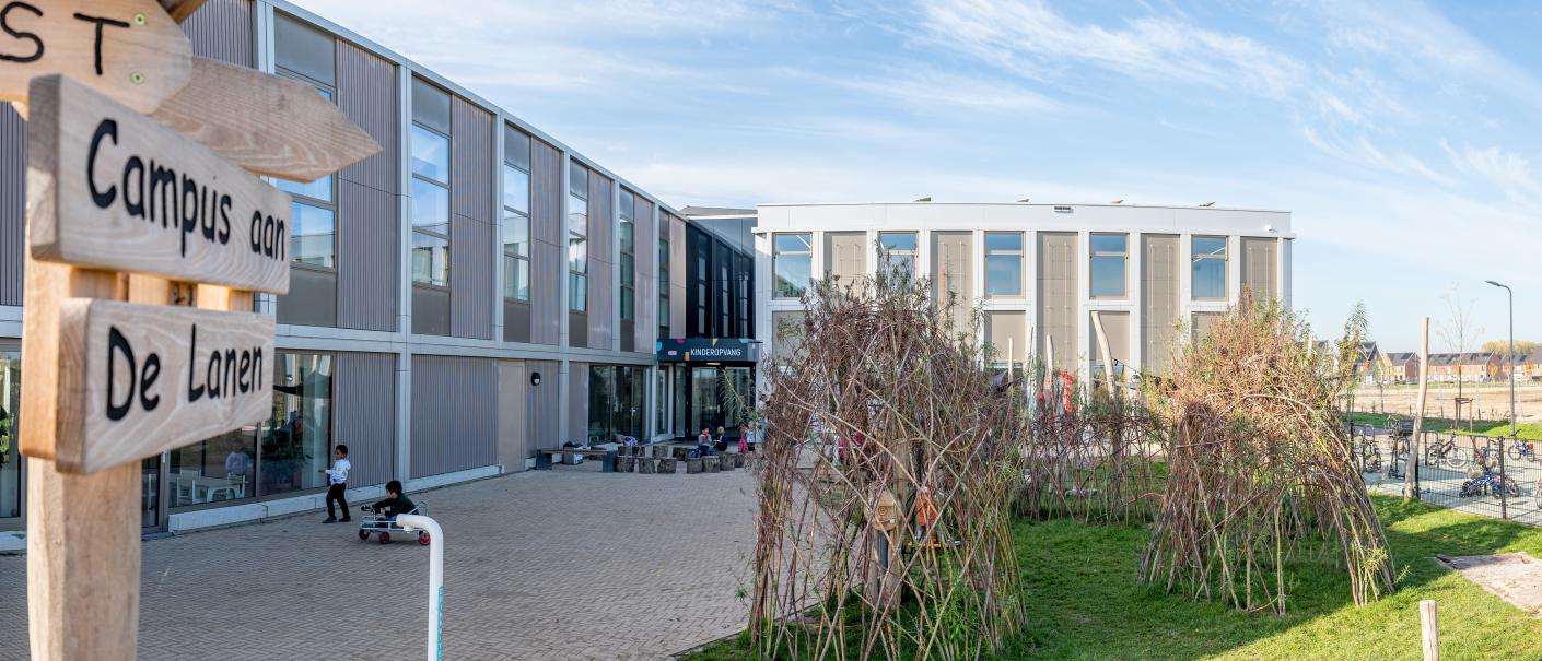Natuur en buiten zijn is heel belangrijk. Frouke Boel, directeur Campus aan De Lanen: “We willen onze leerlingen aardgebondenheid meegeven.” Dit komt zowel terug in het gebouw als in het onderwijs zelf. “We verzorgen lesaanbod niet alleen binnen, maar vooral ook buiten. In de omgeving is veel te leren.”